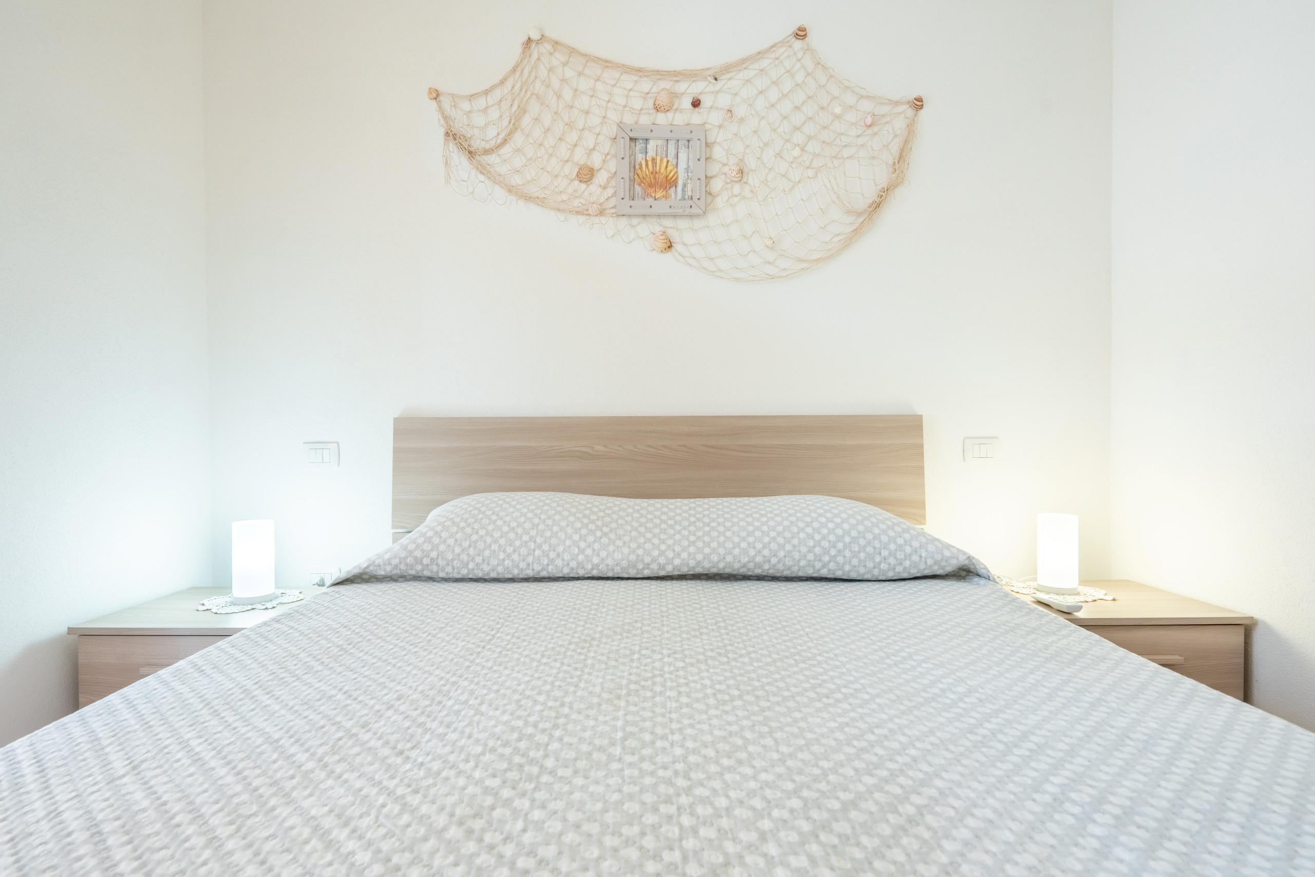 Completo bilocale con spettacolare vista mare in residence appena costruito, con posto auto. Appartamento al primo piano, 4 posti letto, arredato e corredato. Dotato di balcone panoramico, cucina attrezzata, soggiorno con divano-letto, camera matrimoniale e bagno. Fornito di aria condizionata, frigorifero, forno, fornello, TV, lavatrice e asciugacapelli. La biancheria è noleggiata a pagamento su richiesta.