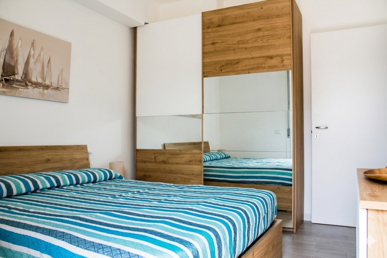 L’appartamento dispone di una camera matrimoniale accogliente, una cameretta con letto a castello e di un divano letto doppio nel soggiorno. La cucina è completamente attrezzata con tutto il necessario per sentirsi come a casa: forno, microonde, bollitore, tostapane, macchinetta del caffè e lavastoviglie oltre a stoviglie e utensili.