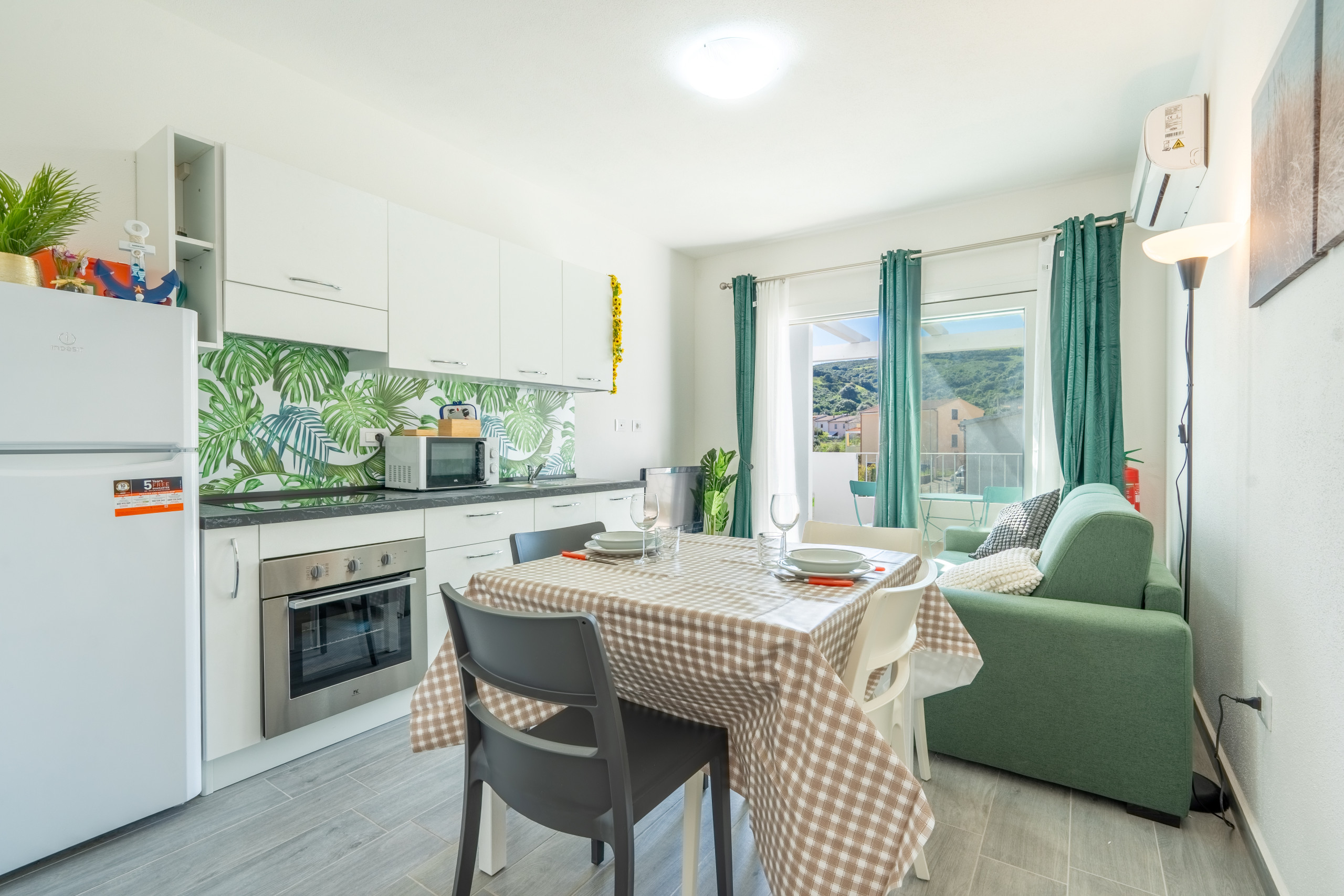 Questo appartamento dal design moderno e dai dettagli vivaci è perfetto per famiglie e gruppi fino a 6 persone, ideale per chi cerca comfort, colore e una posizione strategica vicino alle spiagge più belle del nord Sardegna.