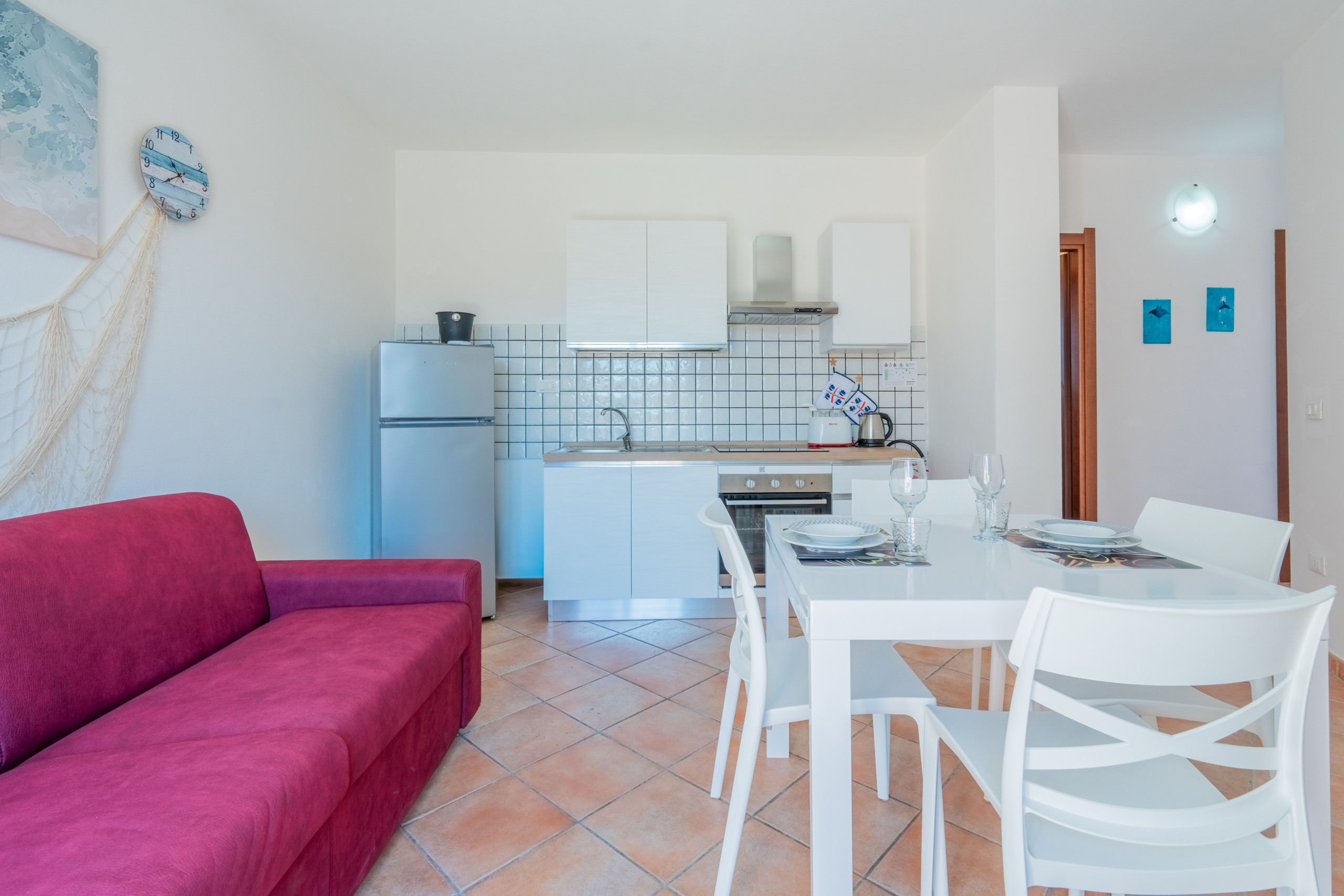 Located in a quiet and residential area, the apartment offers the opportunity to explore the golden sandy beaches and crystal-clear waters of the north-western coast of Sardinia.