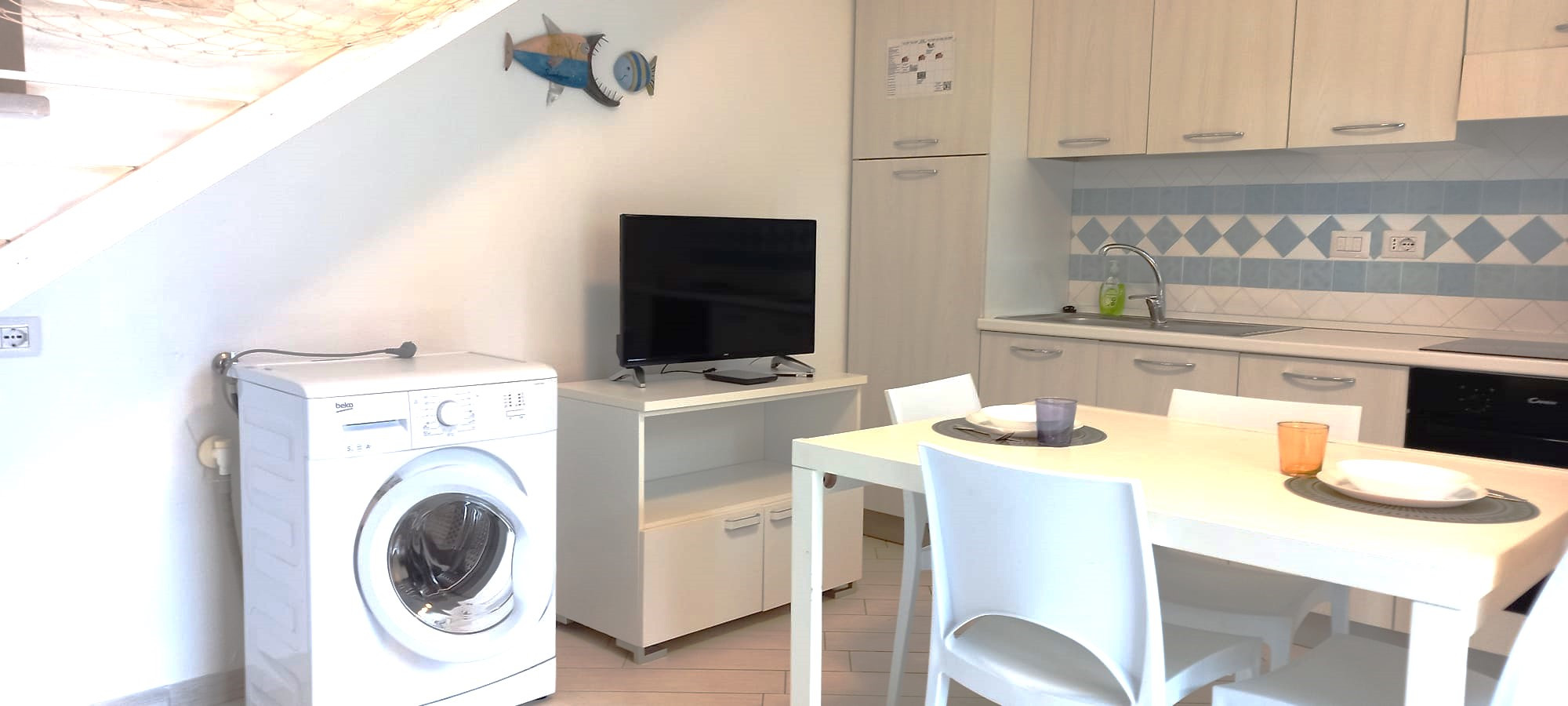 • cocina completamente equipada: placa de inducción, frigorífico, vajilla, utensilios, cafetera y microondas