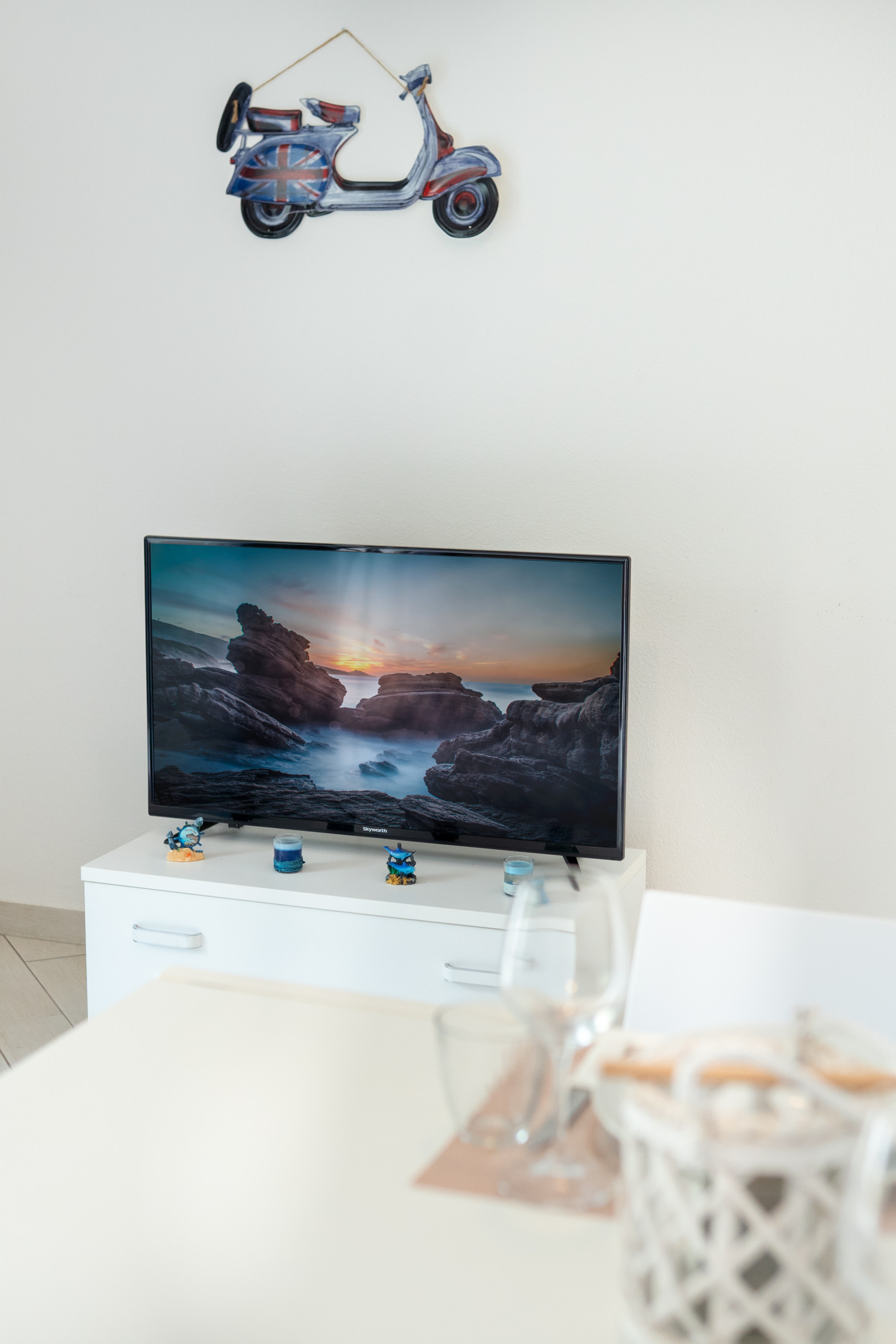 Maison de vacances confortable et bien équipée sur deux étages, dans une résidence avec piscine commune, avec place de parking extérieure. Appartement de trois pièces tout juste construit, 6 couchages, entièrement meublé et équipé. Jardin, cuisine équipée, salon avec canapé-lit, chambre double, chambre simple, salle de bain et balcon avec vue sur la piscine. Équipé de climatisation, télévision, four, plaque de cuisson, micro-ondes et lave-linge. Le linge de lit et de toilette est fourni en location au coût de 10,00 € par personne.